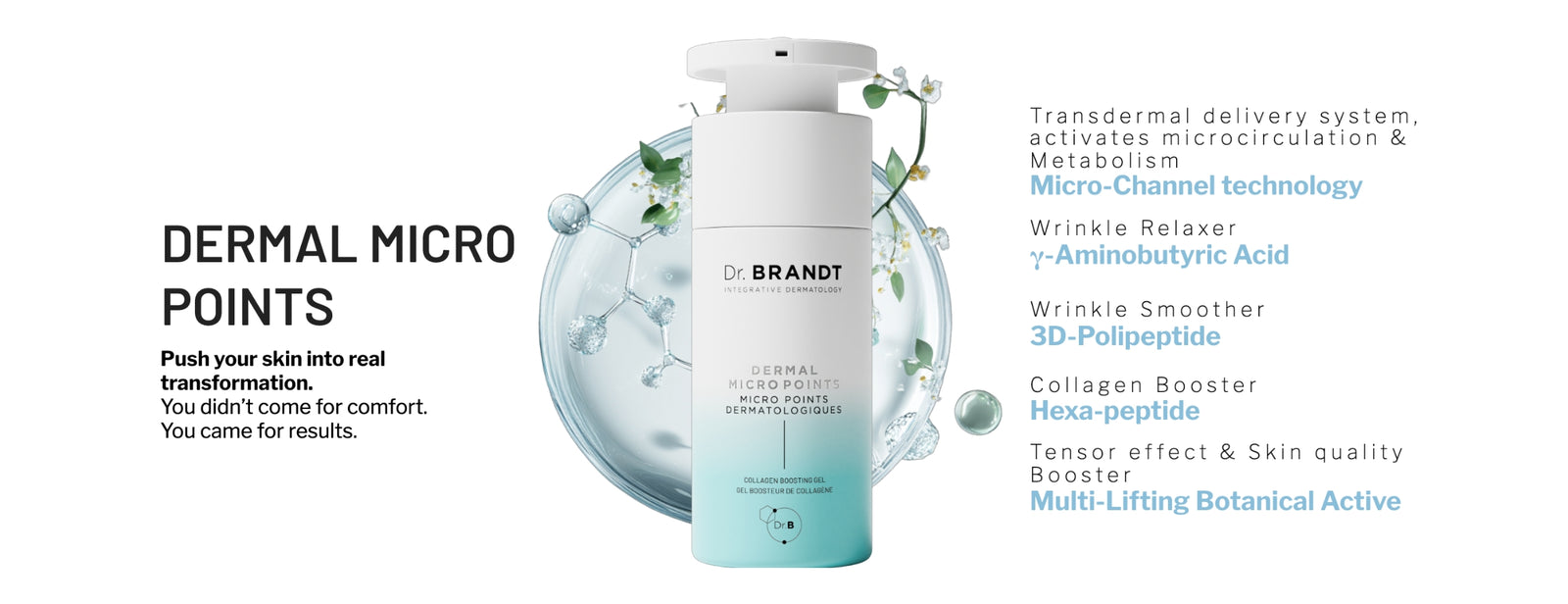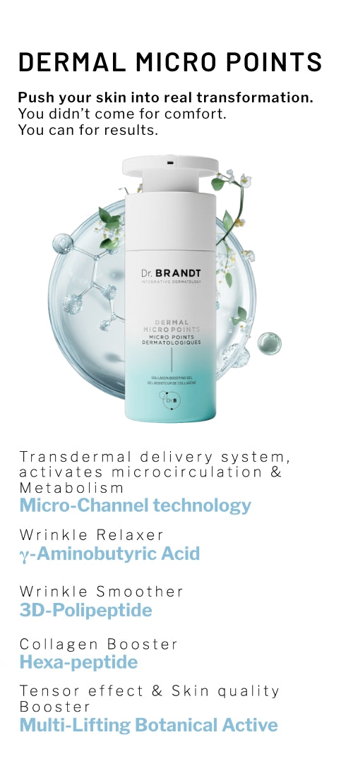 Apply a small amount to clean, dry skin in the PM. Gently massage in circular motions until fully absorbed. For enhanced benefits, take advantage of the millions of activated microchannels by pairing with Dr. BRANDT Hyaluronic Face Cream to plump and deliver deep hydration and/or Hydro Biotic Sleeping Mask to support skin barrier recovery and balance. Expect tingling, redness, itching, and heat sensation which may last for some time — it is a natural reaction and shows the product is working.