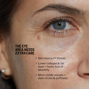 Squeeze a small amount onto your fingertips and warm it between your fingers for 5–6 seconds—this step is essential for optimal application and comfort. Gently pat (don’t rub) the cream directly onto bags and dark circles.