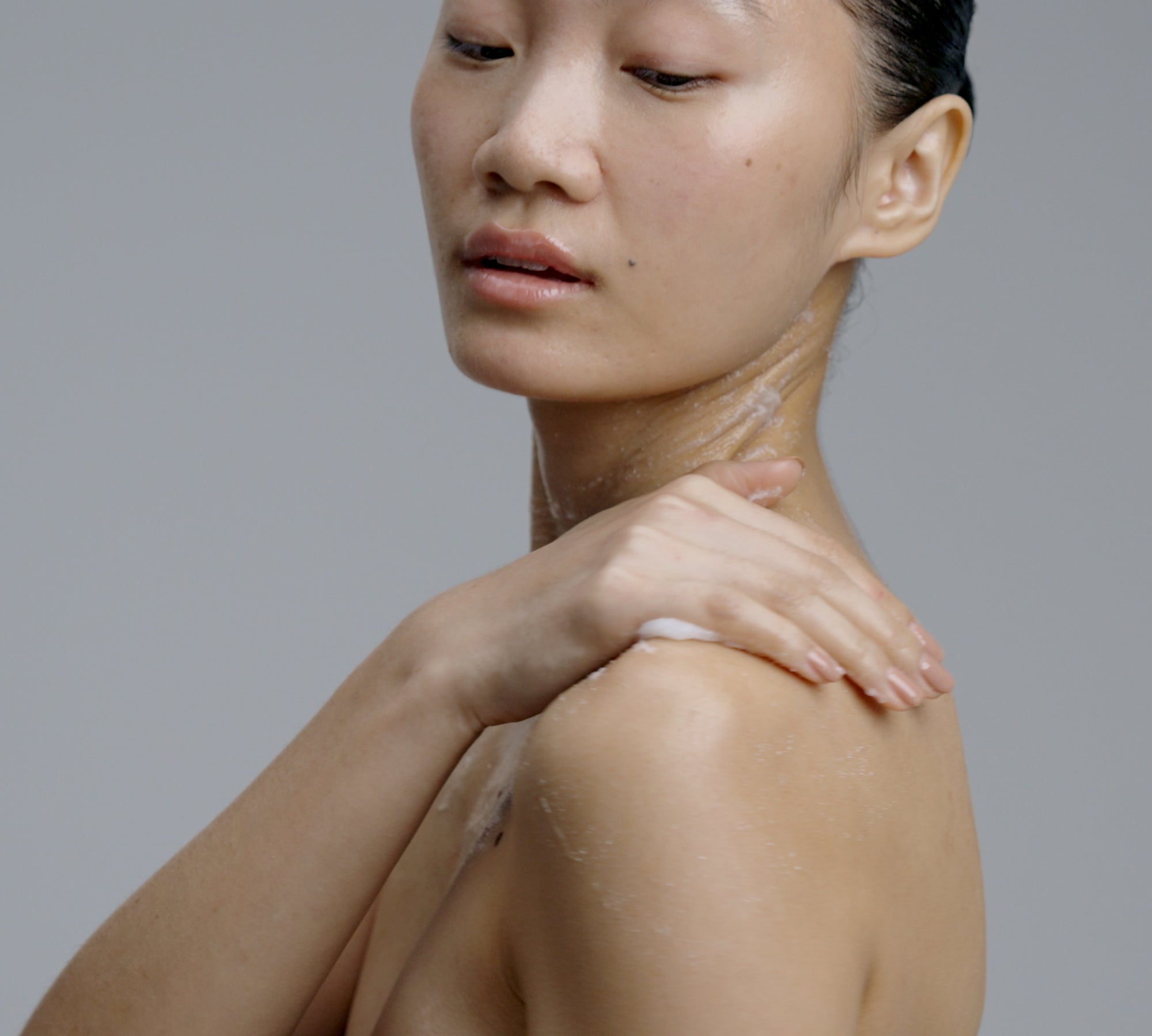 Take 3 pea sized amounts in the palm of your hand and slowly and gently massage the exfoliant onto the skin for 1-2 minutes.
