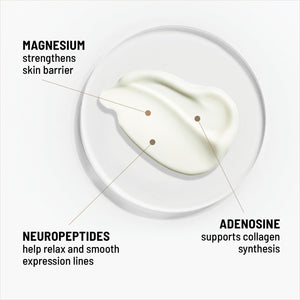 Magnesium and adenosine help to soften and reduce the appearance of expression lines and wrinkles over time.
