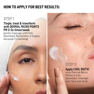 Follow with Dermal Micro Points, gently massage until fully absorbed. Remember, it tingles because it´s working!