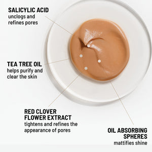 CYCLOPENTASILOXANE, WATER/AQUA/EAU, DIMETHICONE CROSSPOLYMER, LAURYL PEG/PPG-18/18 METHICONE, METHYL METHACRYLATE CROSSPOLYMER, POLYMETHYLSILSESQUIOXANE, DIMETHICONE/VINYL DIMETHICONE CROSSPOLYMER, POLYSILICONE-11, TITANIUM DIOXIDE (CI 77891), DIMETHYL ISOSORBIDE, POLYMETHYL METHACRYLATE, PHENOXYETHANOL, PEG/PPG-18/18 DIMETHICONE, ISOPENTYLDIOL, ETHYLHEXYL PALMITATE, CAPRYLOYL SALICYLIC ACID, CHLORPHENESIN, LAVANDULA ANGUSTIFOLIA (LAVENDER) OIL, ETHYLHEXYLGLYCERIN, MELALEUCA ALTERNIFOLIA (TEA TREE) LEAF OIL, SILICA, TRIETHOXYCAPRYLYLSILANE, HDI/TRIMETHYLOL HEXYLLACTONE CROSSPOLYMER, DIMETHYL OXOBENZO DIOXASILANE, SILICA DIMETHYL SILYLATE, TRIFOLIUM PRATENSE (CLOVER) FLOWER EXTRACT, LAURETH-12, IRON OXIDE (CI 77492, CI 77491, CI 77499)