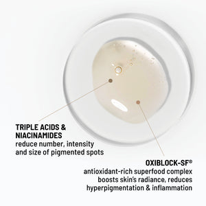 Powered by Oxiblock-SF, a scientifically advanced brightening complex suitable for all skin types and ethnicities, this highly-concentrated gel combines three potent acids to inhibit melanin production, accelerate cellular turnover, and deliver visible, long-lasting results.