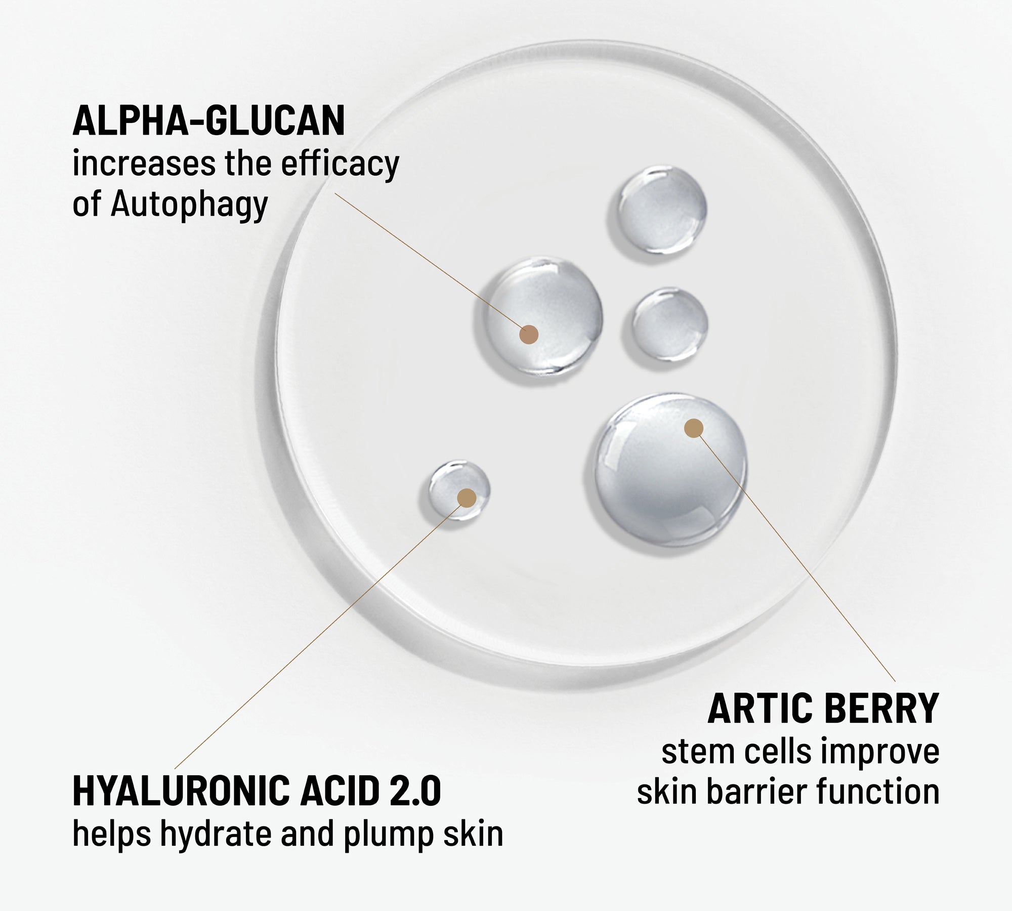 A formula focused on autophagy the internal renewing process of our skin’s cells