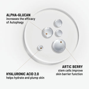 • Enhances the effects of Autophagy, the skin’s natural renewing process